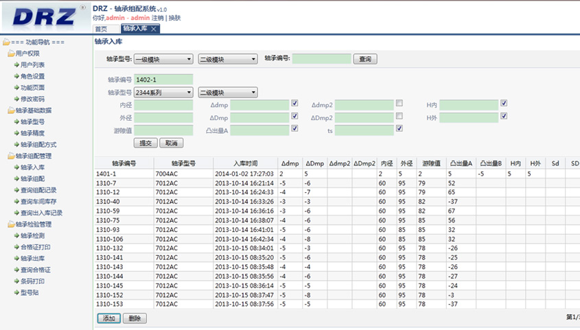 • 軸承組配管理:管理軸承組配的整個(gè)過(guò)程,包括軸承入庫,軸承組配,軸承出庫等